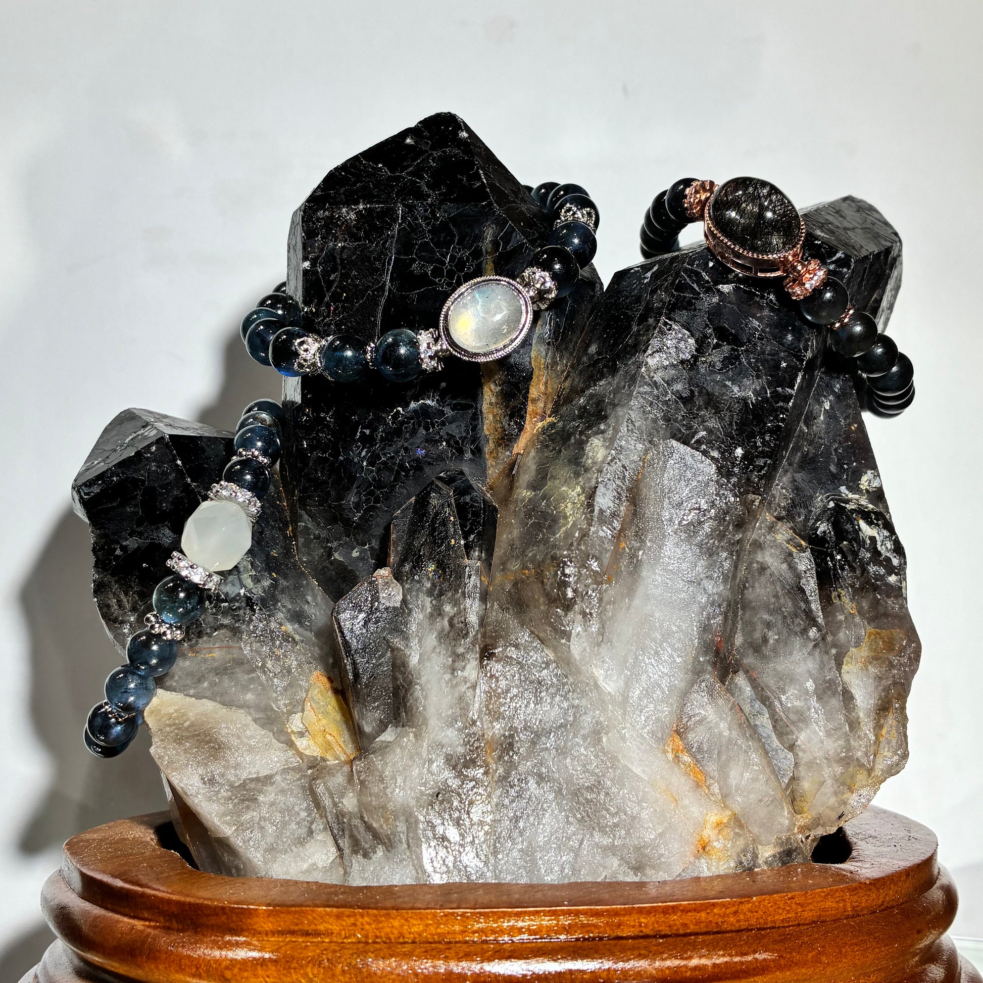 - 將其他水晶飾品或擺件放置於黑晶簇上,進行淨化與充電