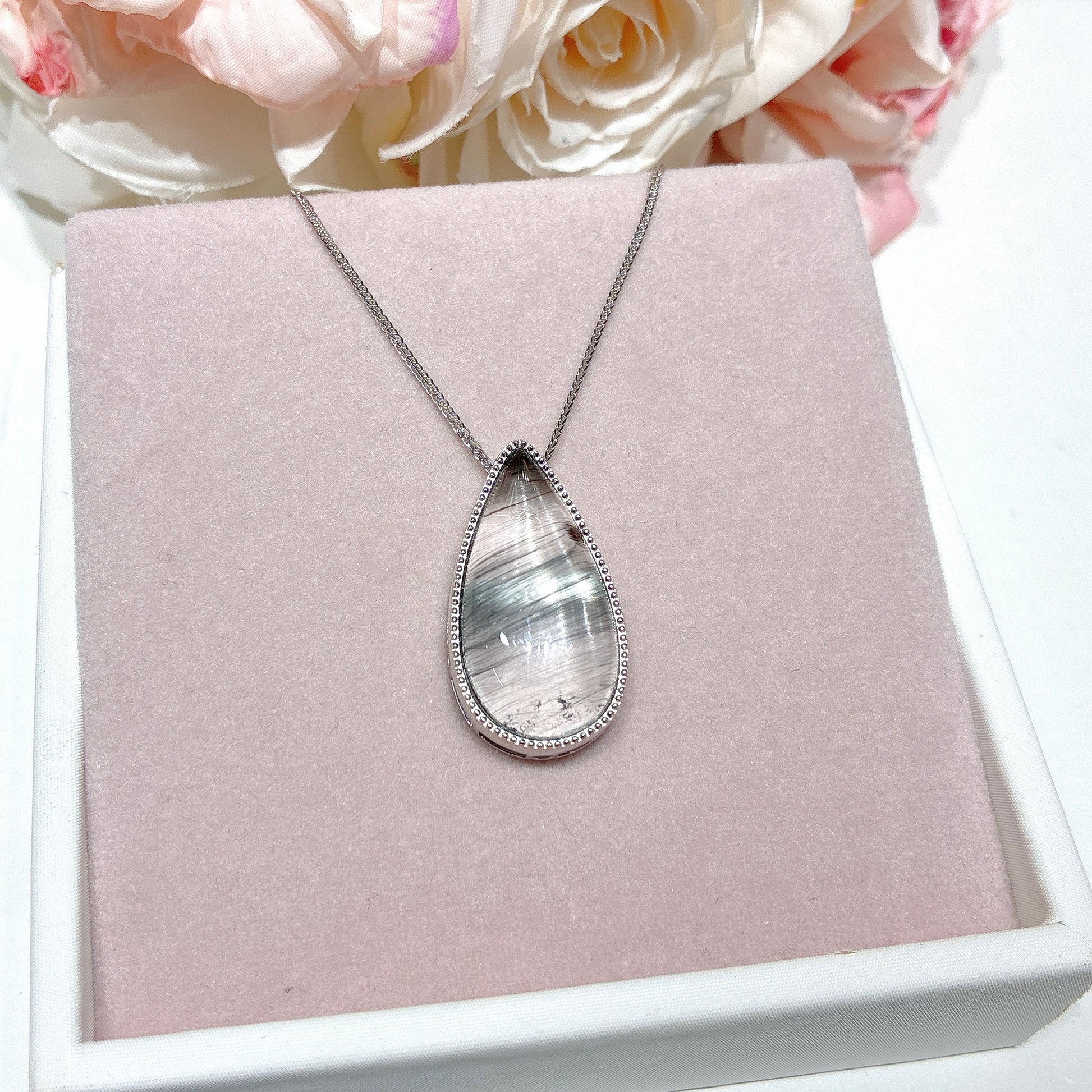 兔毛指水晶中包裹着許多如「兔毛」般的髮絲狀礦物集合體、包裏體或絮狀物,它的形態就像是兔子的絨毛一樣細細柔柔、彎曲纏繞在水晶裡面。