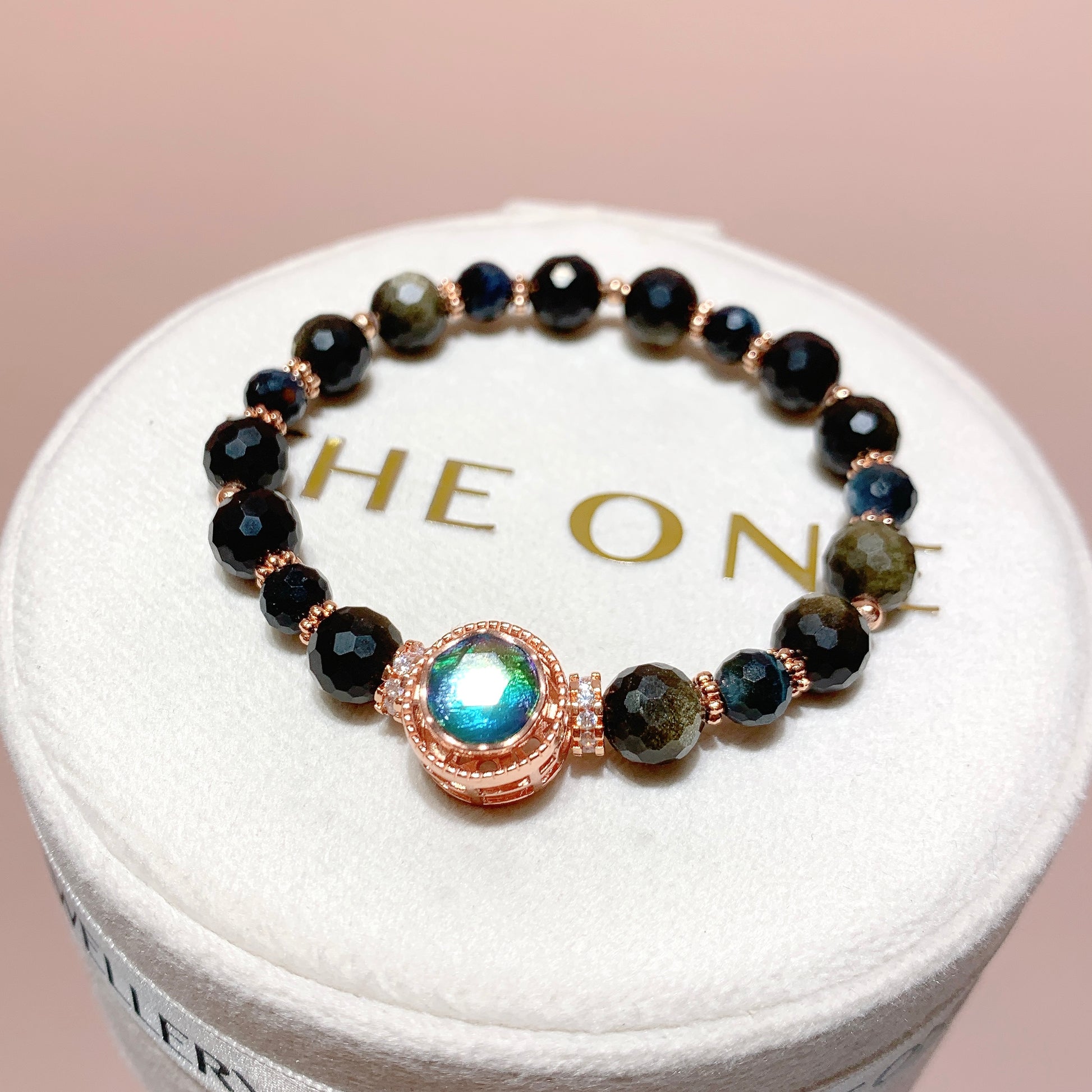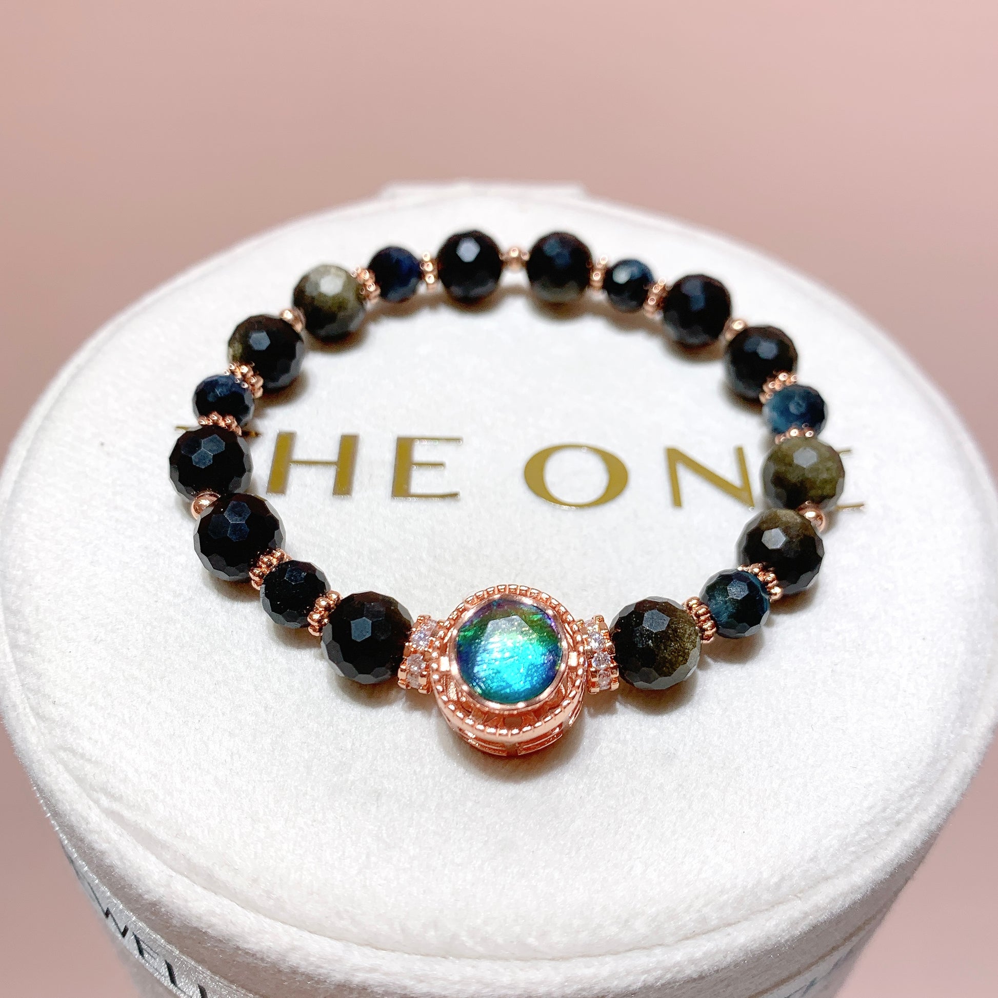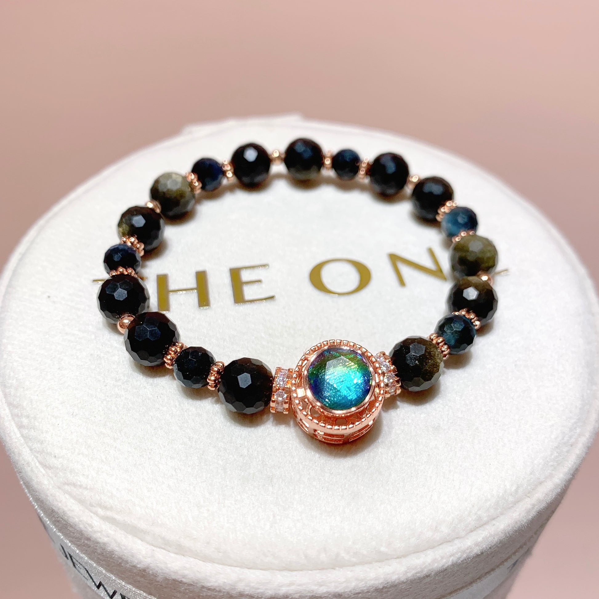 黑曜石家族王者,內部懸浮天然金色礦物質(赤鐵礦),強光下呈現“金沙漩渦”,形成原理為火山岩急速冷卻+礦物結晶共生。